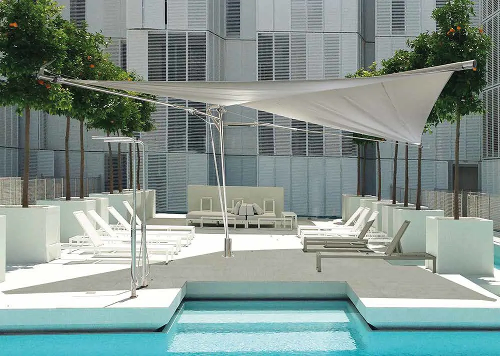 La rotabilità di 270 gradi evoca il Ombrellone a vela di 30 m² e protezione solare di 75 m². Se il vento diventa troppo forte, il sistema del braccio si piega automaticamente e la vela si rannicchia. Che si tratti di un giardino, un patio o una terrazza, la tenda da sole a vela può trasformare l'ambiente esterno in uno spazio accogliente e elegante.